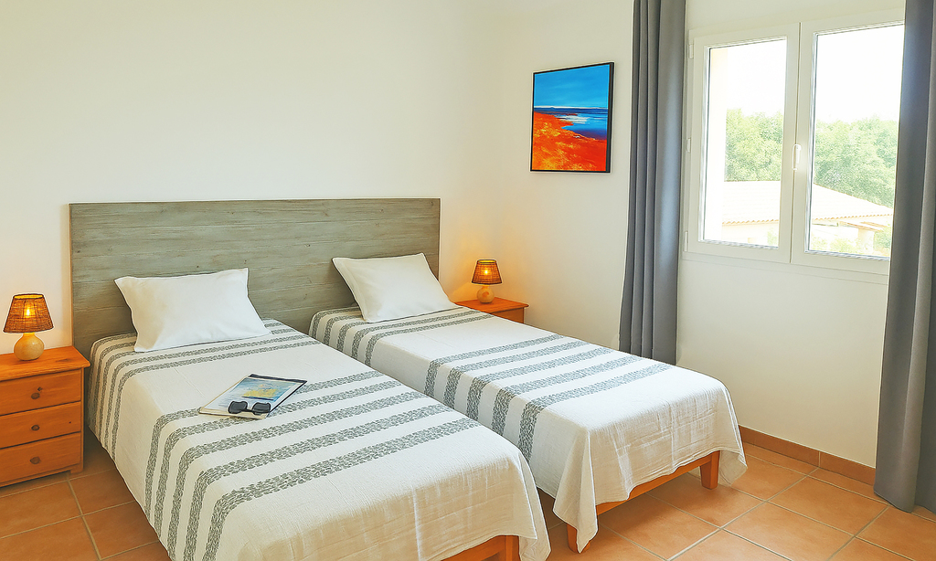 Une chambre avec deux lits en 90 (jumelage possible, draps housse en 180 fournis),