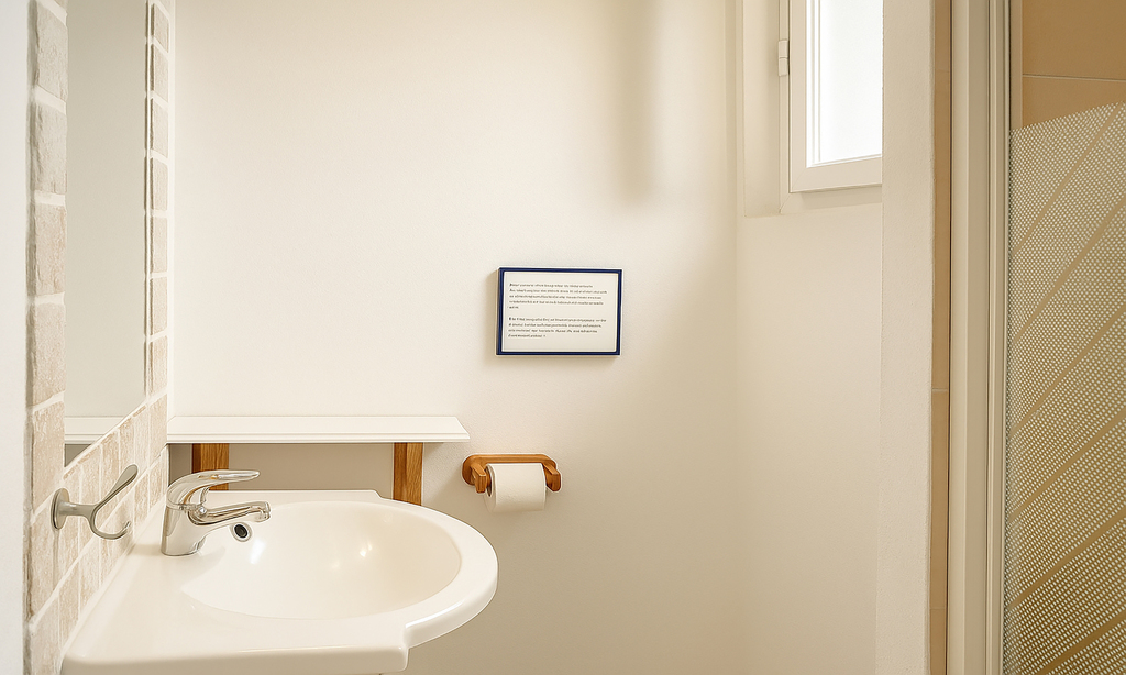 Salle d'eau/WC douche avec porte en verre, sèche-cheveux.